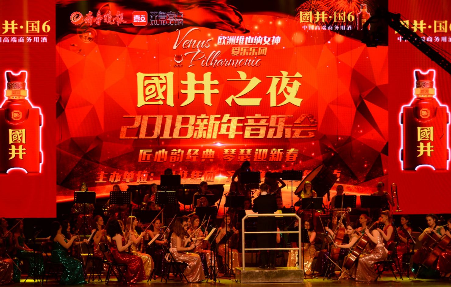 “匠心醞經(jīng)典、琴瑟迎新年”,從古至今,人們以美酒招待貴賓,慶祝盛典,以音樂抒發(fā)情感,凈化心靈,兩者相輔相成,密不可分。12月27日晚,由國(guó)井集團(tuán)主辦的“國(guó)井之夜”2018新年音樂會(huì)在濟(jì)南歷山劇院舉行,由58位佳麗組成的維納斯女神愛樂樂團(tuán)為觀眾帶來(lái)一場(chǎng)視聽盛宴。伴著動(dòng)聽的旋律、悅?cè)说母杪,告別舊歲、擁抱新年。