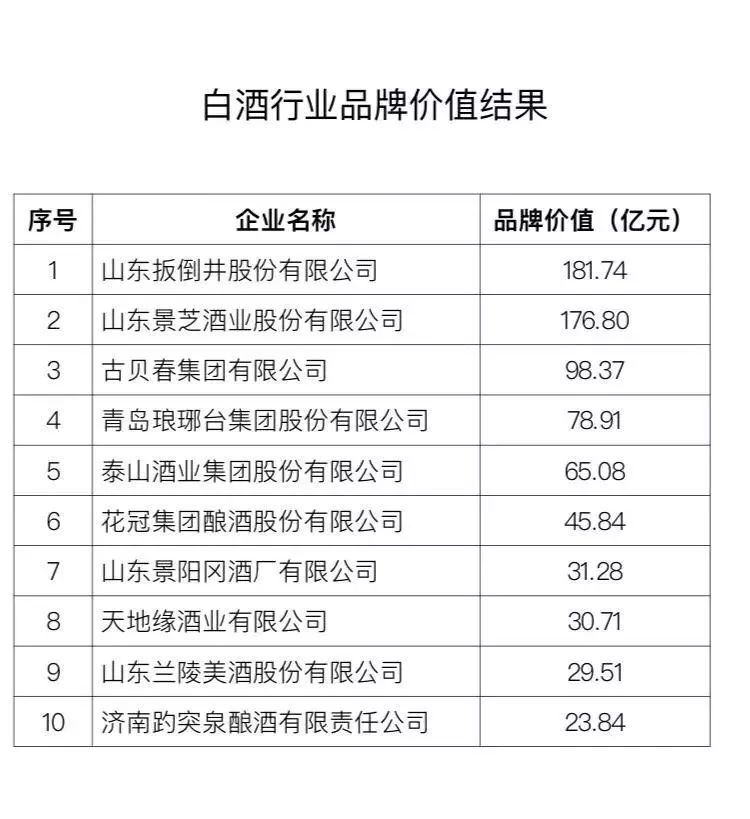山東省品牌建設促進會與山東省食品工業(yè)協(xié)會聯(lián)合依托相關科研院所、高校、資產(chǎn)評估協(xié)會等專家,按照相關國家標準,根據(jù)山東省食品工業(yè)協(xié)會提供的近幾年我省白酒企業(yè)財務數(shù)據(jù)及各項綜合指標,結合全國白酒行業(yè)相關數(shù)據(jù)信息以及我省白酒行業(yè)相關發(fā)展情況,推出了2018年度山東省白酒品牌價值十強。10家白酒企業(yè)品牌總價值達762億元以上。