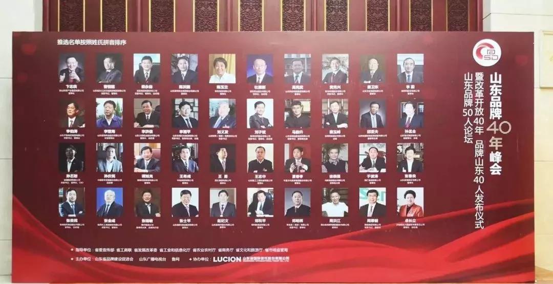 12月20日,在省委宣傳部、省工商聯(lián)、省發(fā)展改革委、省工業(yè)信息化廳、省農(nóng)業(yè)農(nóng)村廳、省商務(wù)廳、省文化和旅游廳、省市場監(jiān)管局等單位指導下,由山東省品牌建設(shè)促進會、山東廣播電視臺等主辦的“山東品牌40年峰會暨改革開放40年,品牌山東40人”頒獎盛典在濟南舉行。