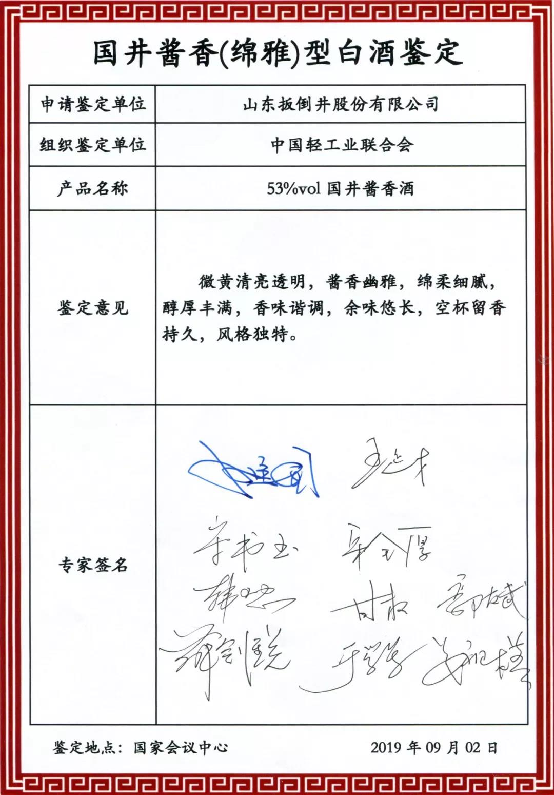 中國工程院院士、北京工商大學校長孫寶國擔任鑒定委員會主任,中國酒業(yè)協(xié)會理事長王延才擔任鑒定委員會副主任。中國輕工食品工業(yè)管理中心主任于學軍,中國酒業(yè)協(xié)會副理事長兼秘書長宋書玉,國家食品質(zhì)量監(jiān)督檢驗中心主任、全國白酒標準化技術(shù)委員會秘書長宋全厚,仁懷酒業(yè)協(xié)會會長、原茅臺集團總工呂云懷,中國科學院微生物研究所信息中心主任馬俊才,中國農(nóng)業(yè)大學食品學院副院長韓北忠,天津科技大學生物工程學院院長肖冬光,四川大學教授周榮清,中國酒業(yè)協(xié)會副秘書長甘權(quán),山東省白酒協(xié)會會長姜祖模,山東省食品工業(yè)協(xié)會會長郭友武,山東省糖酒副食品商業(yè)協(xié)會會長薛劍銳等業(yè)內(nèi)資深專家、教授擔任鑒定委員會委員。