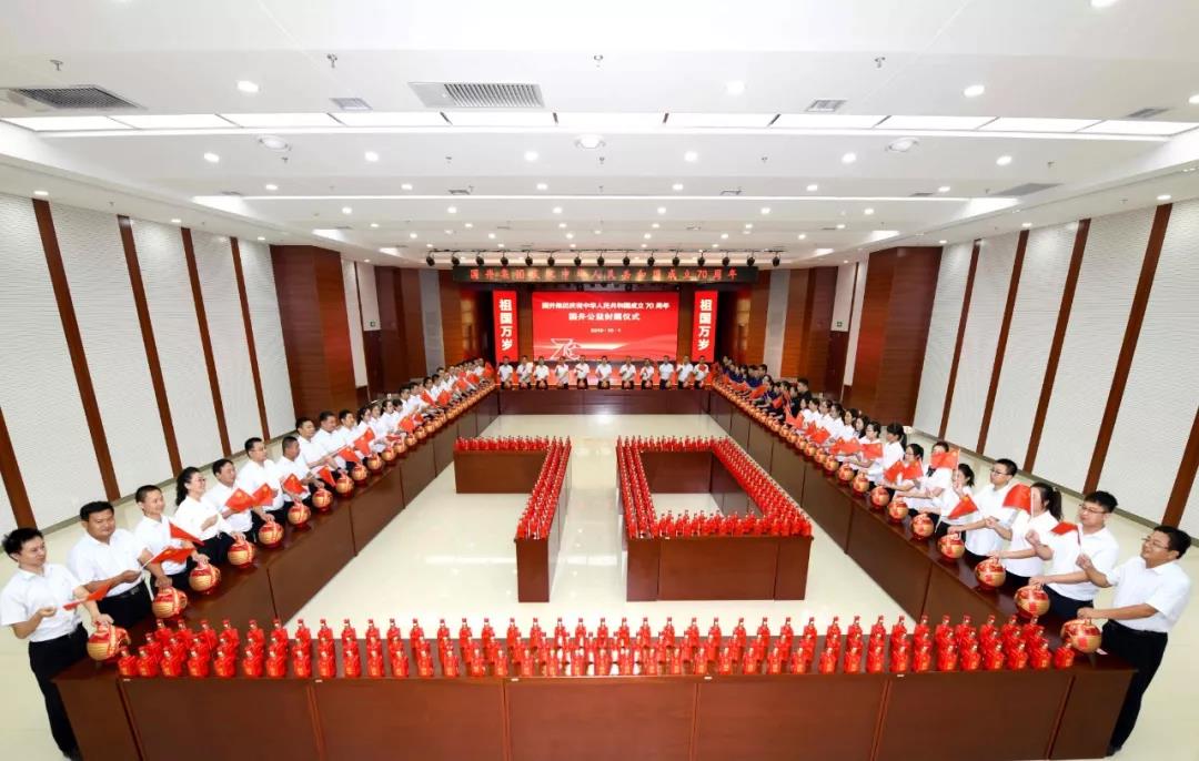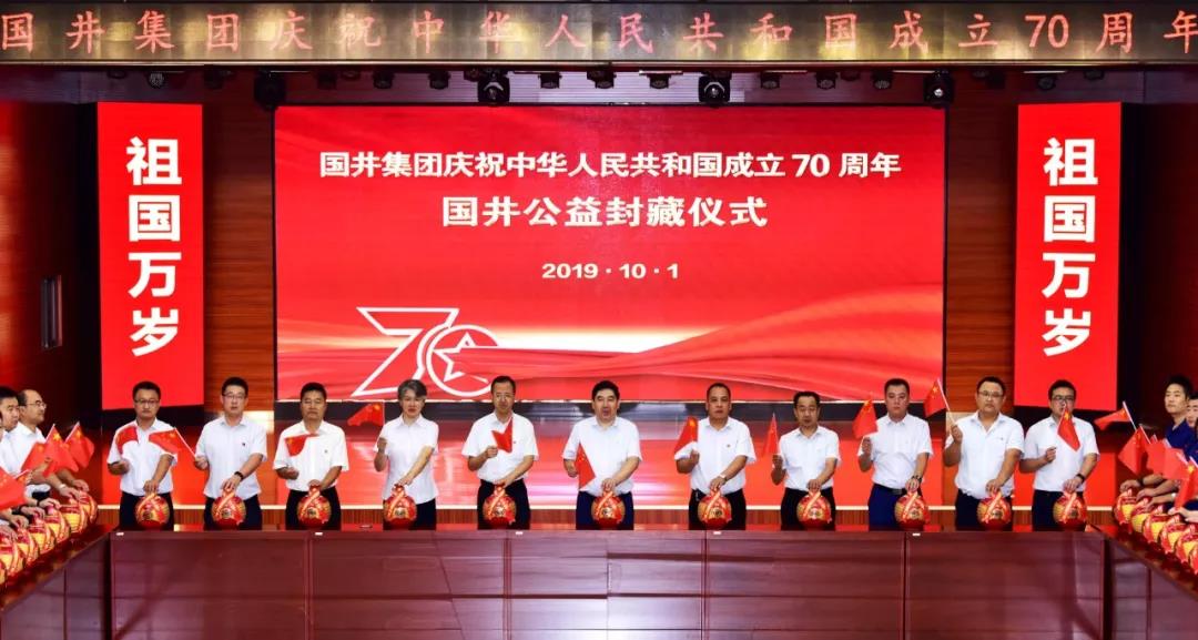 10月1日8時(shí),值此中華人民共和國(guó)成立70周年之際,國(guó)井集團(tuán)來自不同崗位、不同年齡的70名領(lǐng)導(dǎo)及員工,在歌曲《我和我的祖國(guó)》《我愛你,中國(guó)》《祝福你親愛的祖國(guó)》《今天是你的生日》等經(jīng)典愛國(guó)歌曲的優(yōu)美旋律中,共同封藏了70壇由中國(guó)釀酒大師、中國(guó)第一品酒師、中國(guó)白酒工藝大師、國(guó)家級(jí)評(píng)委團(tuán)隊(duì)精心釀制的高質(zhì)量原酒。此次封藏的70壇高質(zhì)量原酒,全部收益將無償捐贈(zèng)給公益機(jī)構(gòu)。國(guó)井集團(tuán)員工通過獻(xiàn)愛心公益封藏活動(dòng),慶祝偉大祖國(guó)70華誕,祝福祖國(guó)繁榮昌盛、人民幸福安康!